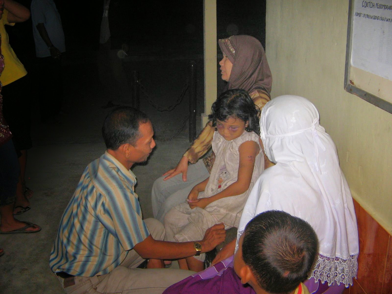 Berdasarkan informasi yang diperoleh dari tetangga korban Rabu malam (5/5), sekitar jam 23.00 di Rumah Sakit, bahwasanya ayah korban kerap sekali melakukan peganiayaan terhadap ketiga anaknya tersebut, namun tetangga tidak dapat berbuat banyak karena saat hendak melerai pelaku (ayah korban) selalu mengancam warga agar tidak ikut campur atas urusan keluarganya sambil menghunuskan sebilah pisau.