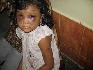 “Kepala ayung diantukkan (dilagakan) ayah dengan kepala ayah dan ayung dipukuli,” ucap Anggi sambil menikmati jajanannya. Dan pernyataan mereka berdua dibenarkan oleh para tetangga dan keluarga korban, yang turut serta mengantar korban ke Rumah Sakit. Bahkan mereka menyatakan hal itu sudah lama berlangsung dan sudah pernah disampaikan kepada aparat desa namun tidak ada jalan keluarnya.