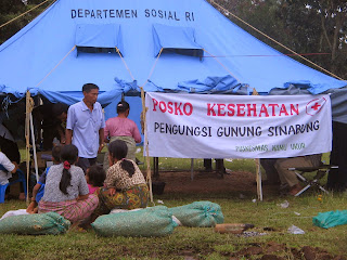 Setibanya kami di Desa Telagah,kami menjumpai pengungsi yang di tempatkan di sebuah jambur (tempat pertemuan bagi masyarakat karo setempat) yang berada di sebuah tanah lapang di tengah tengah Desa Telagah.